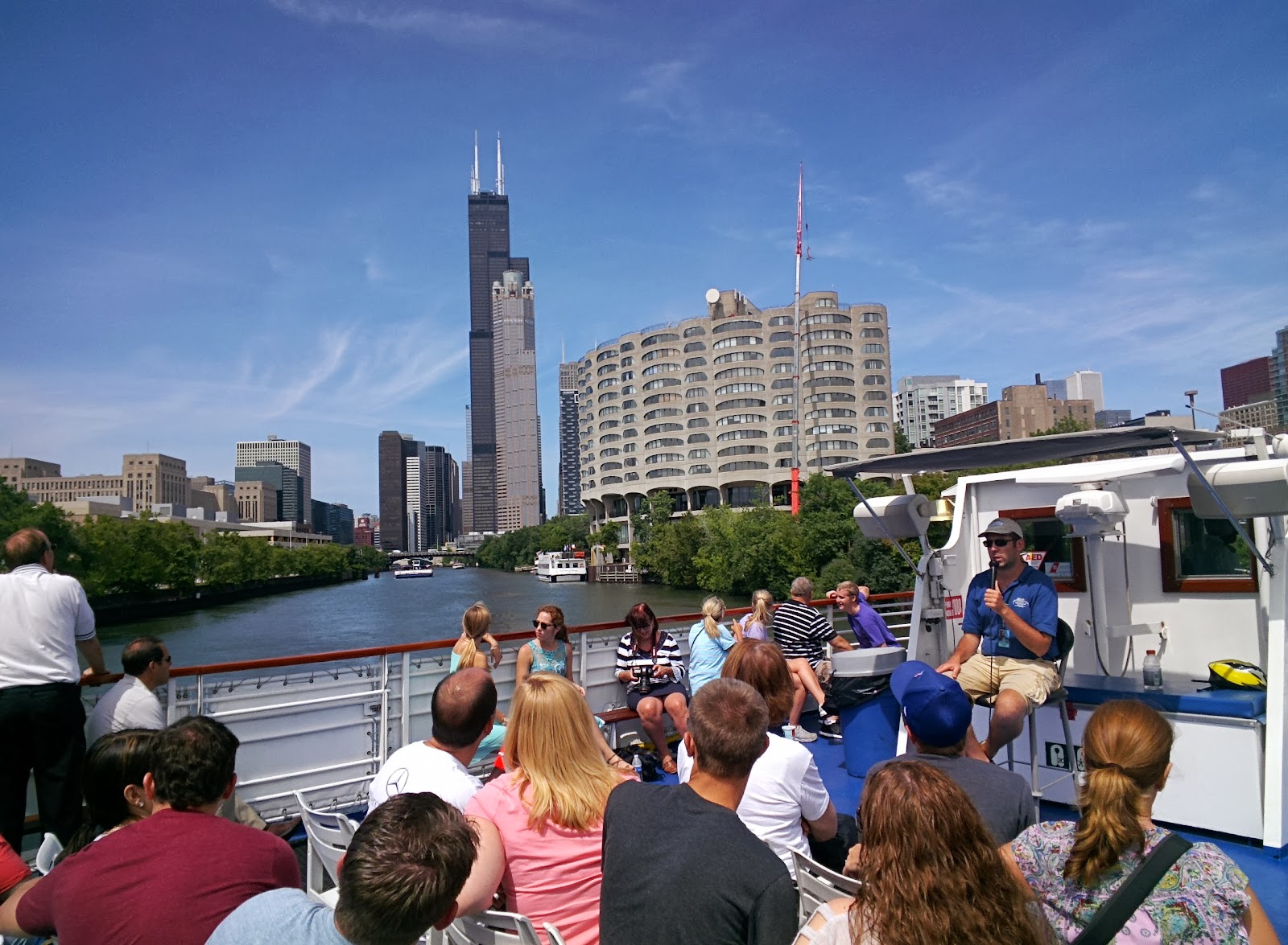 Checking my emails on the huge screen of the new smartphone—and still in bed under the blankets—got a response from another couchsurfer who's been in town for a few days, staying with friends for a week-long vacation, and up for the well-received architecture boat ride in the Chicago river—the world's only city-wide museum, as they call it themselves.